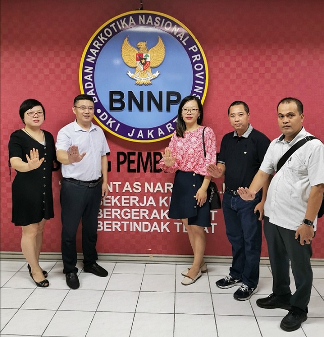 在印度尼西亞期間,我公司代表團(tuán)和由國(guó)家禁毒委員會(huì)副秘書長(zhǎng)、中國(guó)禁毒基金會(huì)秘書長(zhǎng)李憲輝率領(lǐng)的國(guó)家禁毒委代表團(tuán)一起參觀了印度尼西亞麗都國(guó)家禁毒中心所屬的禁毒培訓(xùn)中心、國(guó)家毒品實(shí)驗(yàn)室和禁毒康復(fù)中心,了解了印度尼西亞毒品預(yù)防教育、禁毒培訓(xùn)、毒品濫用監(jiān)測(cè)、和戒毒康復(fù)等工作情況。同時(shí)應(yīng)客戶邀請(qǐng)下,國(guó)家禁毒委同我公司貿(mào)易團(tuán)隊(duì)一起參觀了客戶公司,了解毒檢產(chǎn)品在印尼市場(chǎng)的銷售情況。