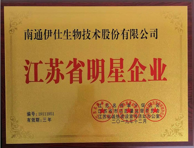 南通伊仕生物技術(shù)股份有限公司榮獲江蘇省明星企業(yè)稱號