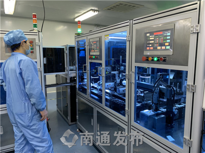 10月30日,南通伊仕生物技術(shù)股份有限公司生產(chǎn)車間內(nèi),一臺臺自主研發(fā)的全自動化設(shè)備馬力全開,零星的幾個工作人員身穿潔凈防護(hù)服,只需動動手指操作控制面板。分切、組裝、入袋包裝、批號打碼……一個個小小的試劑板從這里誕生,被運(yùn)往世界各地,日產(chǎn)量約170萬人份。