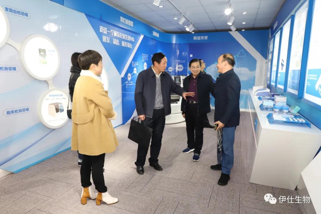 一行人在辦公室主任毛紅娟和研發(fā)總監(jiān)顧飛的陪同下參觀了伊仕生物企業(yè)展廳、研究院展廳和生產(chǎn)車間。