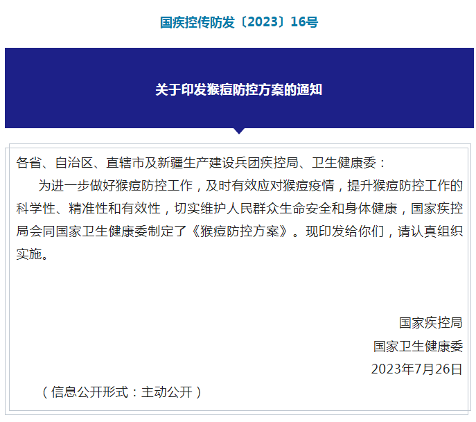 7月末,國(guó)家疾控局、國(guó)家衛(wèi)生健康委聯(lián)合制定印發(fā)了《猴痘防控方案》,引發(fā)社會(huì)關(guān)注。