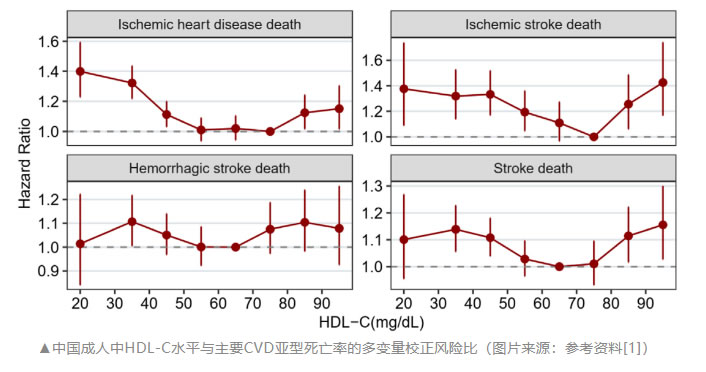 結(jié)果顯示,低HDL-C和高HDL-C均與死亡風(fēng)險增加相關(guān)。該研究推薦50 mg/dL~79 mg/dL作為中國成人HDL-C的最佳范圍。正確管理低HDL-C和高HDL-C,可給血脂異?;颊邘慝@益。論文指出:“該研究是第一個在近340萬中國成人中全面評估HDL-C與全因死亡率和病因特異性死亡率之間關(guān)系的研究”。
