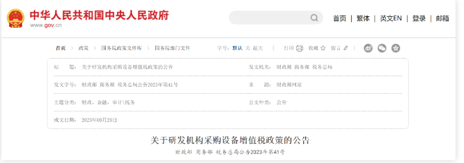 財(cái)政部 商務(wù)部 稅務(wù)總局關(guān)于研發(fā)機(jī)構(gòu)采購設(shè)備增值稅政策的公告